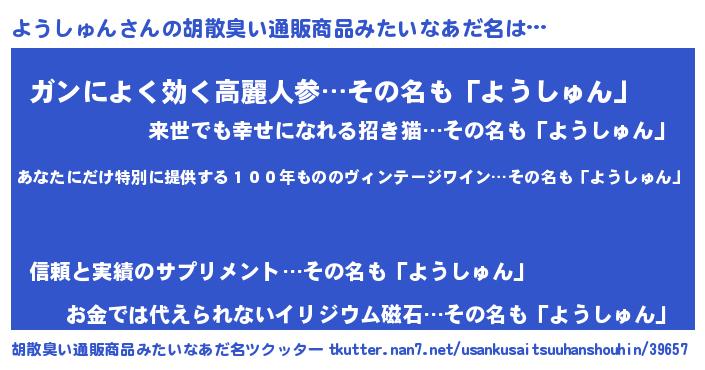 | 意味不明あだ名 | 『住所不定無職ようしゅん(13歳)』 |