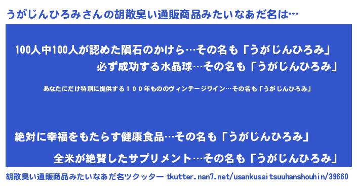 | 意味不明あだ名 | 『住所不定無職うがじんひろみ(3歳)』 |