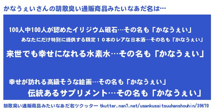 | 意味不明あだ名 | 『永久保存かなうぇい』 |