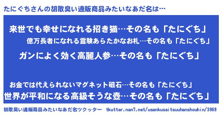 | 意味不明あだ名 | 『自称たにぐち』『永久保存たにぐち』 |