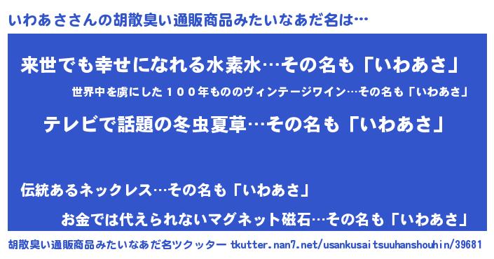 いわあささんの胡散臭い通販商品みたいなあだ名をツクッター!