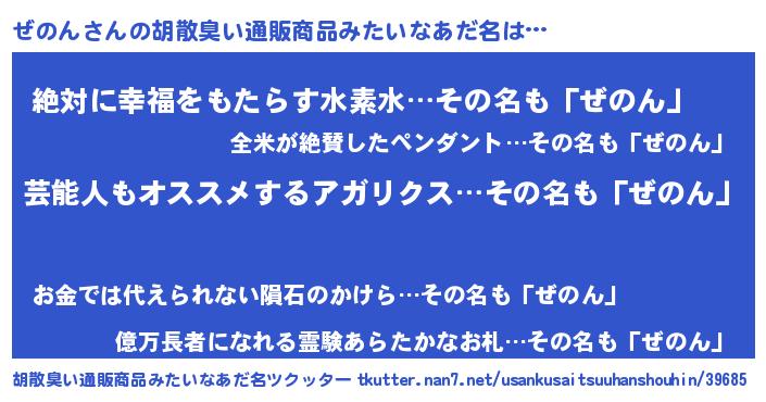 | 意味不明あだ名 | 『自称ぜのん』『なめこ科ぜのん属』 |