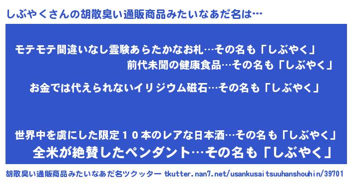 | ヘコむあだ名 | 『しぶにゅー』『しぶぷりん』 |