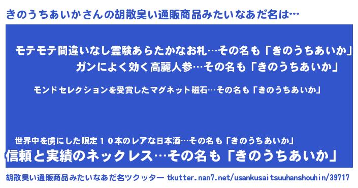 | 男性向けラノベタイトル風あだ名 | 『きのうちあいかに滅ぼされるだけの簡単なお仕事です』 |