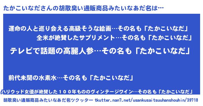| 欧米人風あだ名 | 『ケンブリッジたかこいなだ』 |