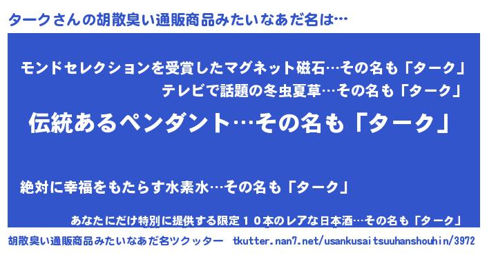 | ヘコむあだ名 | 『ターっちょ』『ターク(笑)』 |