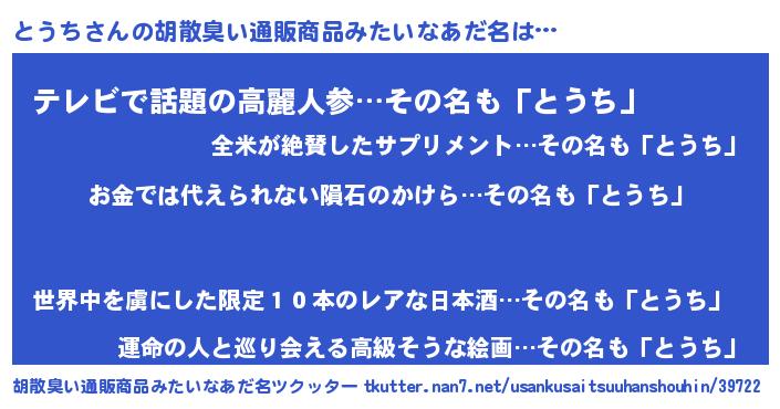 | 意味不明あだ名 | 『なめこ科とうち属』『自称とうち』 |