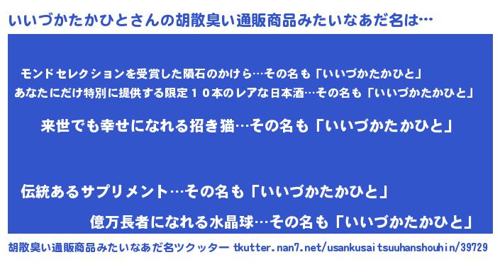 | ヘコむあだ名 | 『いいづかたかひと(小並感)』『いいもー』 |