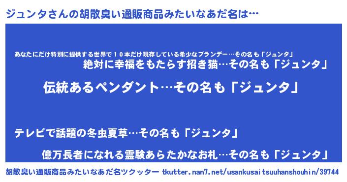 | ことわざ | 一石二鳥『一石二ジュンタ』 |