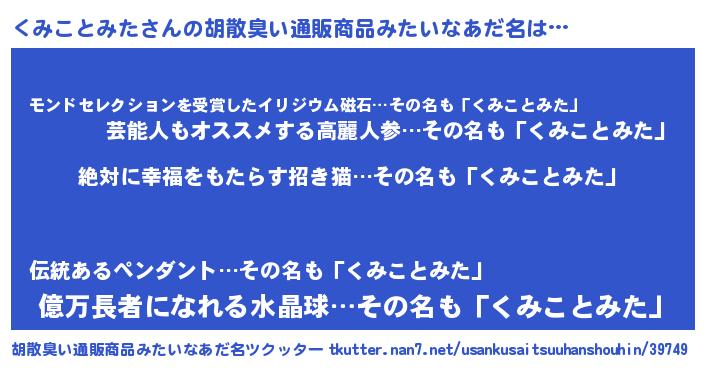 | 意味不明あだ名 | 『永久保存くみことみた』 |