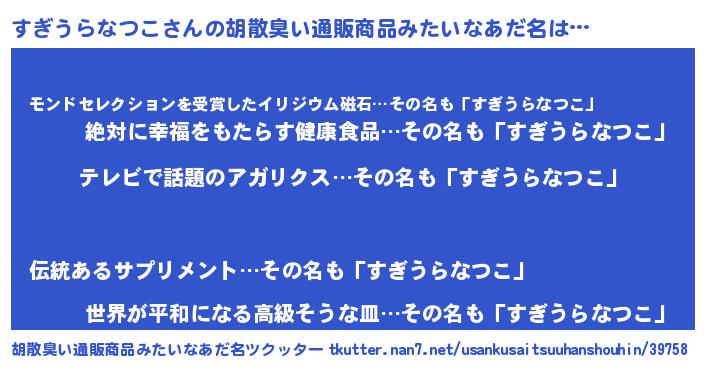 | 意味不明あだ名 | 『自称すぎうらなつこ』 |