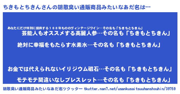 | ヘコむあだ名 | 『ちきもとちきん(遠い目)』『ちきふぇ~』 |