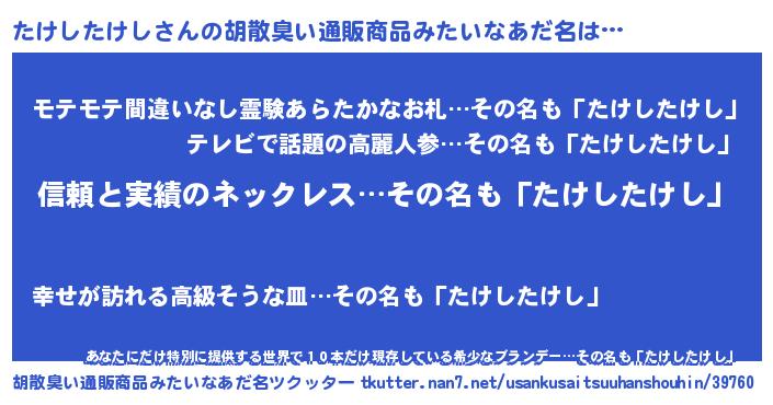 | 意味不明あだ名 | 『とにかく怪しいたけしたけし』 |
