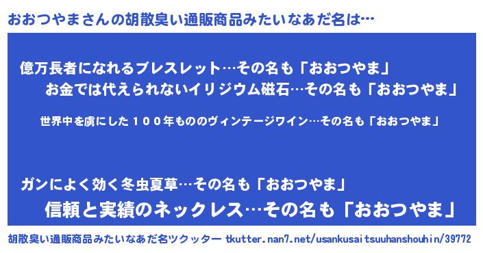 | 意味不明あだ名 | 『住所不定無職おおつやま(13歳)』 |