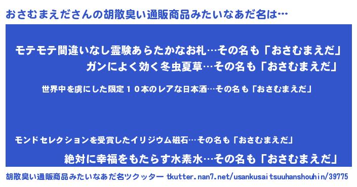 | ヘコむあだ名 | 『おさにゅー』『おさむまえだ(爆)』 |