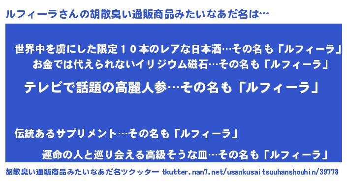 | ヒーロー風カッコイイあだ名 | 『最強戦士ルフィーラ』『仮面ルフダー』 |