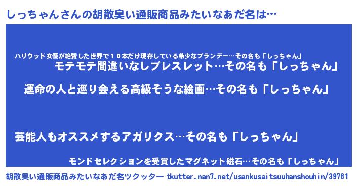 | 欧米人風あだ名 | 『しっちゃんクリステル』 |