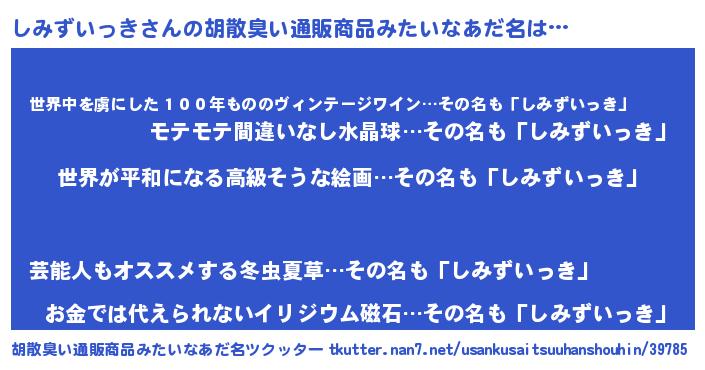 | 欧米人風あだ名 | 『しみずいっきクリステル』 |