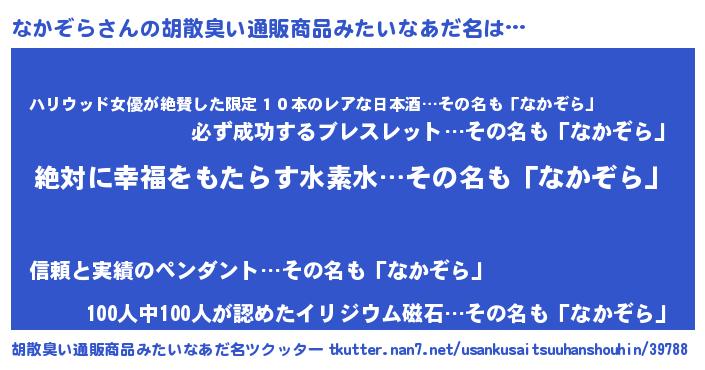 | ヘコむあだ名 | 『なかぞら(遠い目)』『なかにゅー』 |