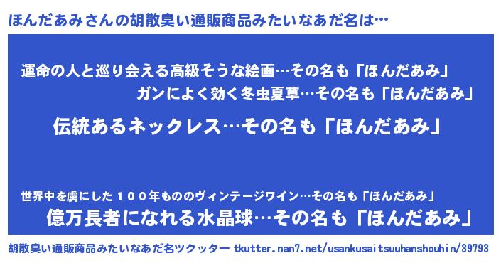 | 意味不明あだ名 | 『とにかく怪しいほんだあみ』 |