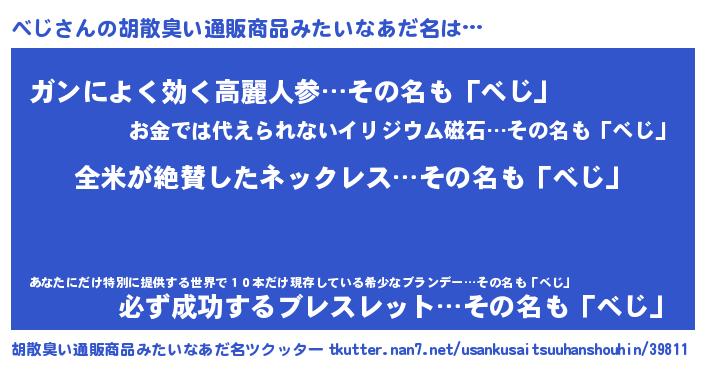 | 意味不明あだ名 | 『とにかく怪しいべじ』『自称べじ』 |