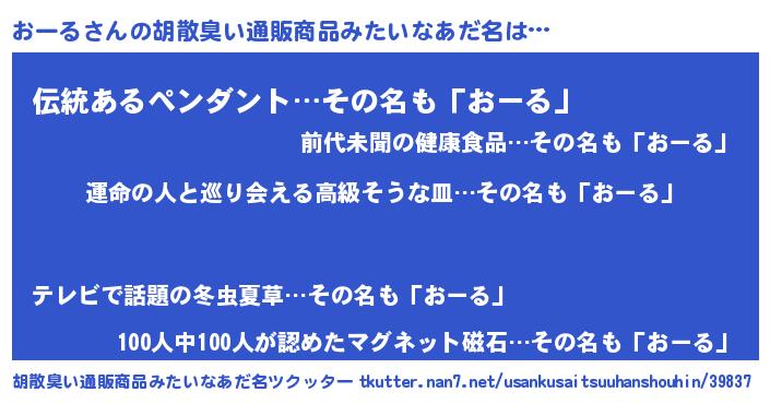 | ヒーロー風カッコイイあだ名 | 『ウルトラおーるマン』『黄金騎士オー』 |
