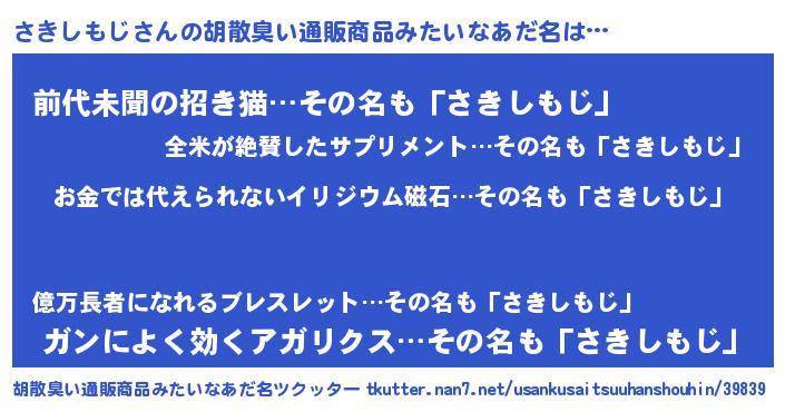 | ヒーロー風カッコイイあだ名 | 『愛の使者さきしもじ』『ネオサキシモジ』 |
