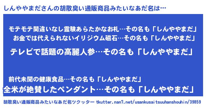 | 意味不明あだ名 | 『自称しんややまだ』 |