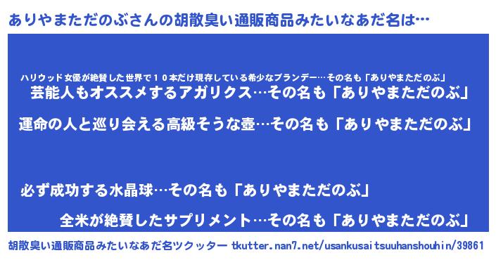 | 欧米人風あだ名 | 『ありやまただのぶクリステル』 |