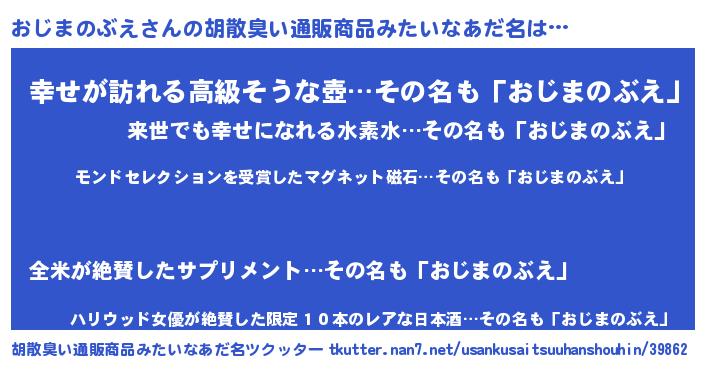 | ヘコむあだ名 | 『酢こんぶ』『おじまのぶえ(小並感)』 |