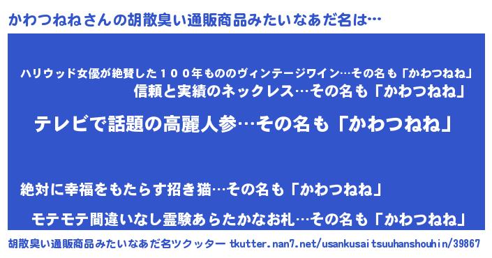 | 欧米人風あだ名 | 『ケンブリッジかわつねね』 |