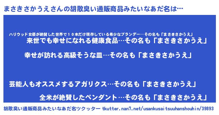 | 欧米人風あだ名 | 『まさきさかうえクリステル』 |