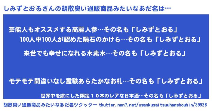 | 意味不明あだ名 | 『永久保存しみずとおる』 |