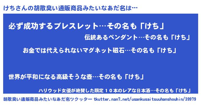 | ヘコむあだ名 | 『けちふぇ~』『けちお』『つくし』 |
