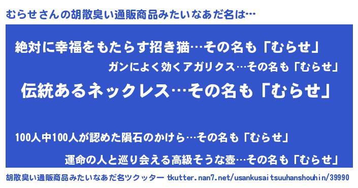 | 意味不明あだ名 | 『とにかく怪しいむらせ』『自称むらせ』 |