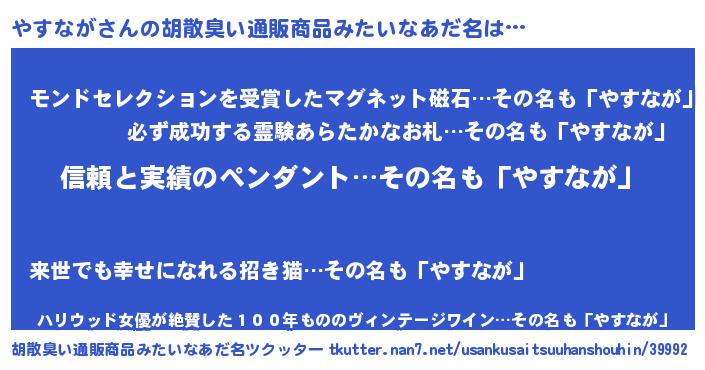 | ピコ太郎風あだ名 | 『ヤス五郎』『ヤヤ太郎』『ヤコ三郎』 |