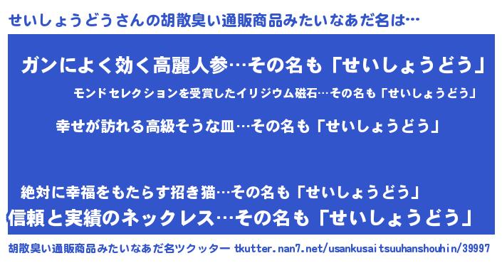 | 意味不明あだ名 | 『せいしょうどうフォーエバー』 |