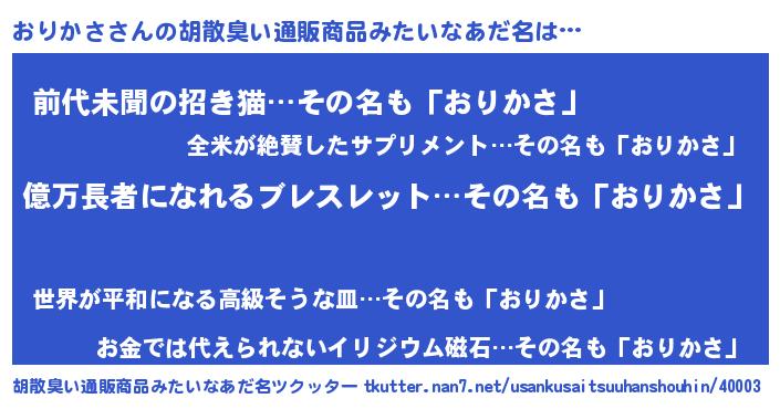 | 欧米人風あだ名 | 『マイケルおりかさ』『ダニエルおりかさ』 |