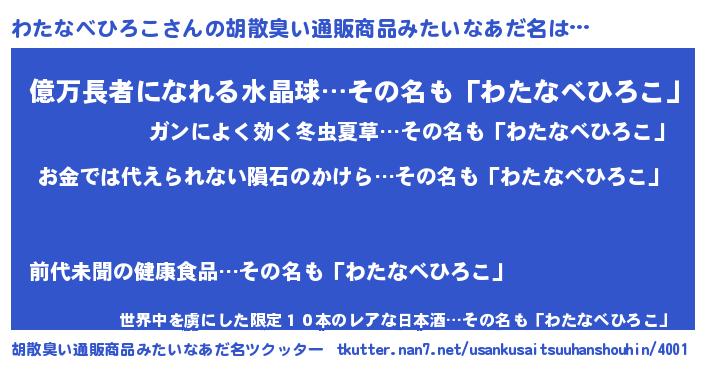 | ヘコむあだ名 | 『わたもー』『わたなべひろこ(笑)』 |