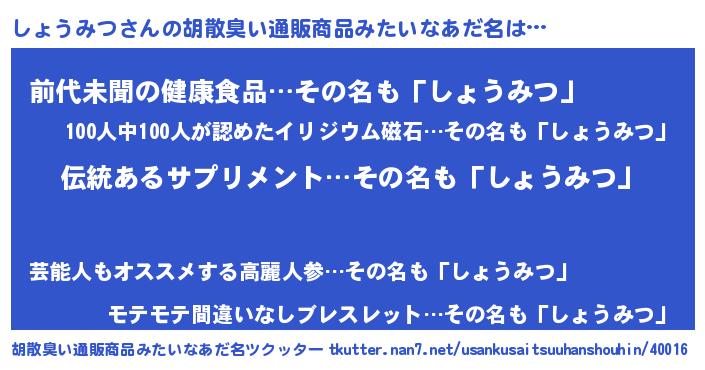 | ヘコむあだ名 | 『しょお』『しょうみつ(爆)』『豆乳』 |