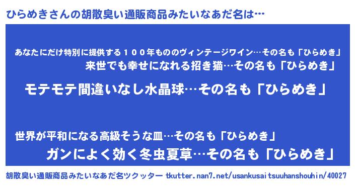 | ヘコむあだ名 | 『ひらもー』『ひらめき(笑)』 |