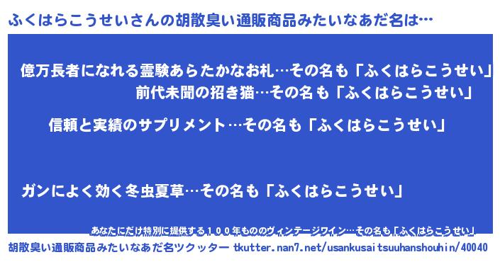 | 意味不明あだ名 | 『とにかく怪しいふくはらこうせい』 |