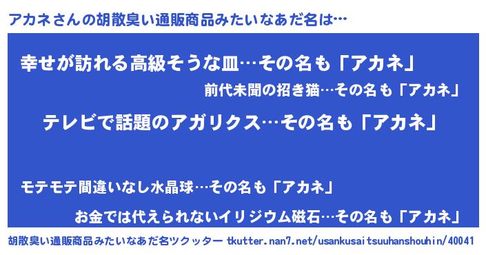 | 意味不明あだ名 | 『自称アカネ』『アカネフォーエバー』 |