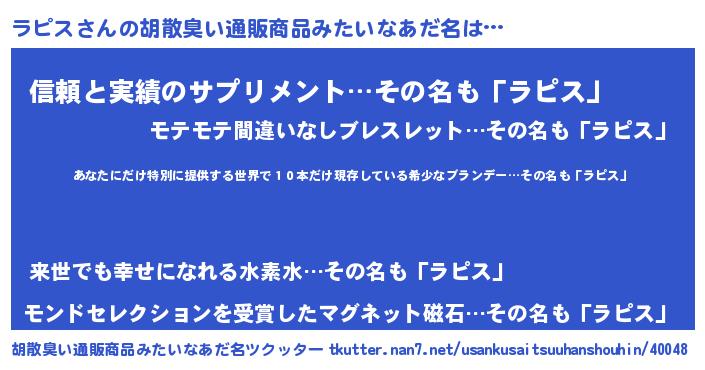 | 意味不明あだ名 | 『住所不定無職ラピス(85歳)』 |