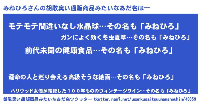 | ヘコむあだ名 | 『みねひろ(笑)』『みねふぇ~』 |