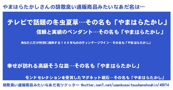 | 欧米人風あだ名 | 『トリンドルやまはらたかし』 |