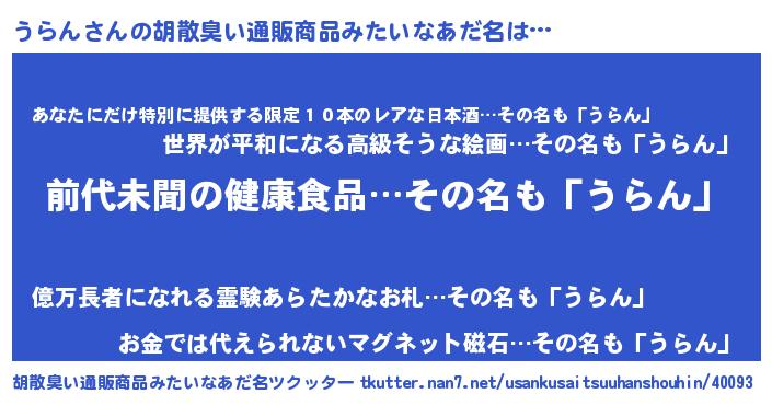 | 欧米人風あだ名 | 『ダルビッシュうらん』『ダニエルうらん』 |