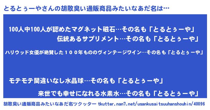 | 意味不明あだ名 | 『住所不定無職とるとぅーや(7歳)』 |
