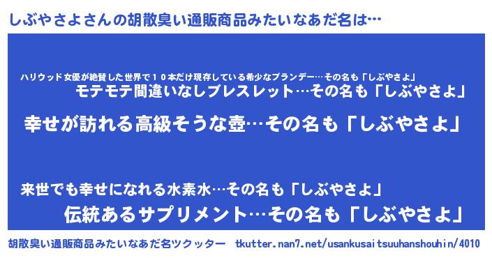 | 意味不明あだ名 | 『しぶやさよフォーエバー』 |