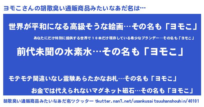 | ヘコむあだ名 | 『ヨモこ(苦笑)』『豆乳』 |